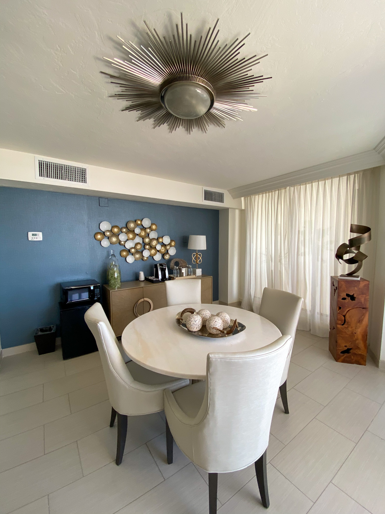 Rooms and most suites at Naples Grande are housed in an 18-story main building. All rooms and suites have chic, modern decor, with a mix of tile and carpeted floors plus gray accent walls, blue bolster cushions and bed runners, and light-wood dressers and desks.